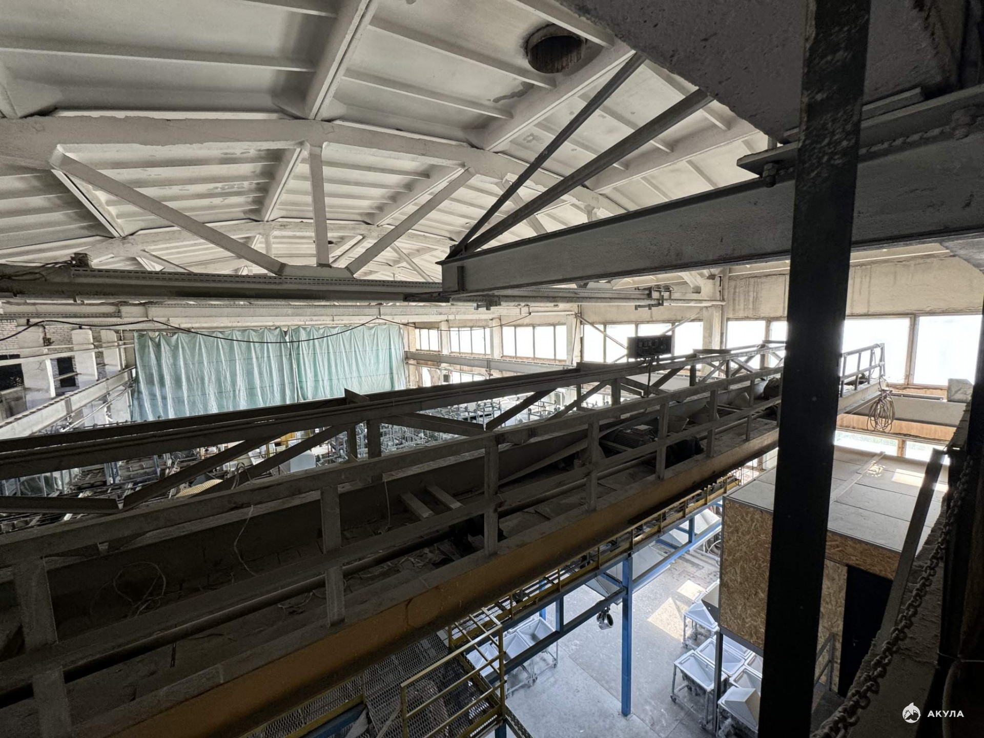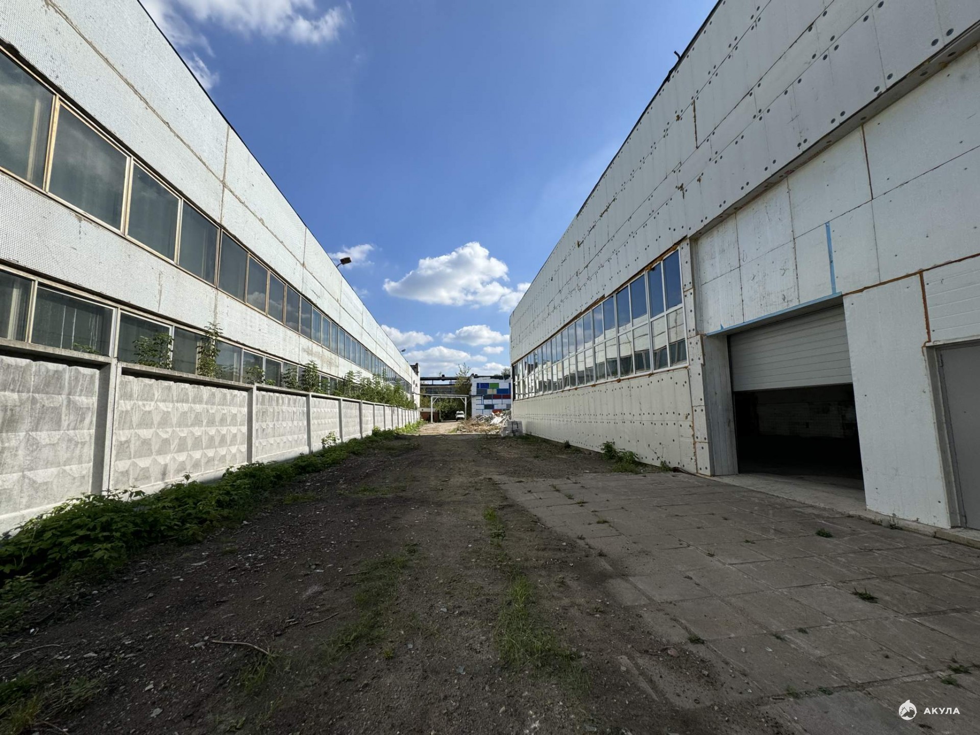 - Производственный цех: 2422 кв.м., одноэтажный, "рабочая" высота 9 м., две кран-балки грузоподъемностью 3, 5 т. Полы: бетон. Ворота распашные на нулевом уровне. Небольшая площадка перед въездом.
