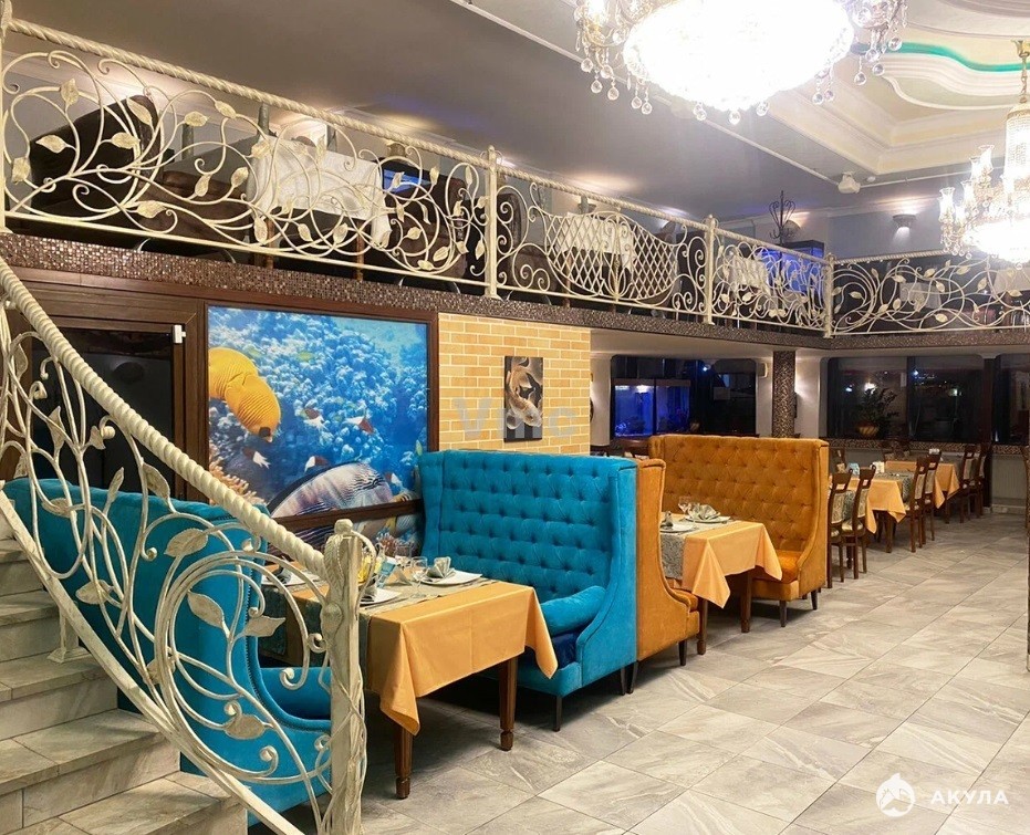 Просторный зал. Кухня укомплектована современным профессиональным оборудованием. Мощная приточно-вытяжная система, кондиционирование. Все оборудование и мебель в идеальном состоянии.