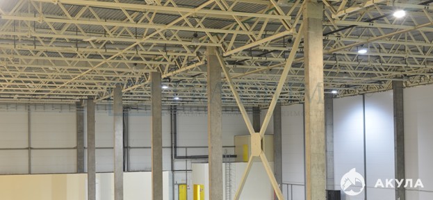 Полы - бетон с антипылью. Нагрузка на пол - 7 т/м²